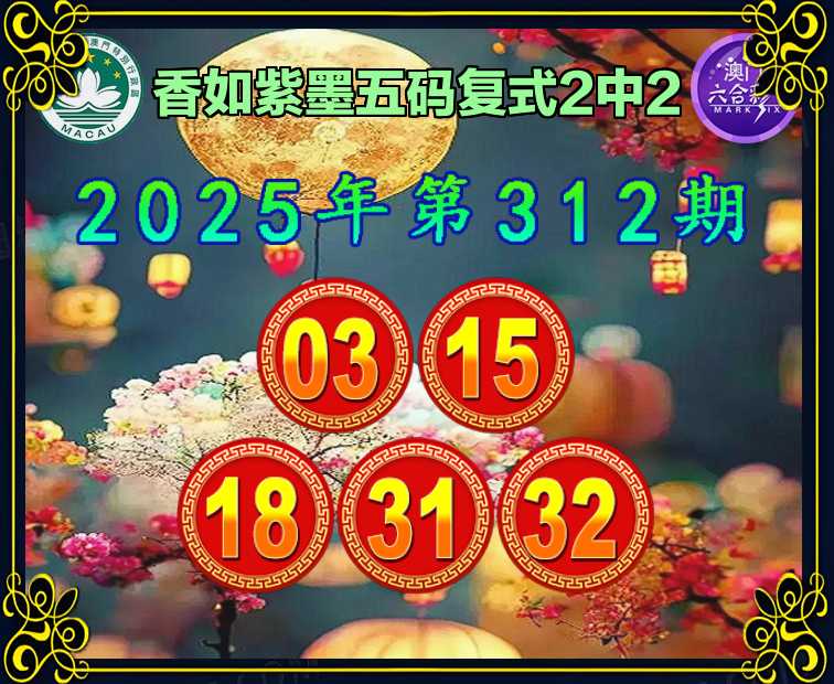 312期:『香如紫墨』 🥽五码复式2中2🥽